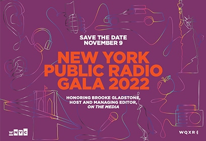This year’s NYPR gala honoree Brooke Gladstone is the host and managing editor of On the Media – WNYC’s weekly investigation into how the media shapes our worldview. She started her career in public radio at National Public Radio in 1987, first as Senior Editor of NPR’s Weekend Edition with Scott Simon, and later, All Things Considered. By 1991 she had received a Knight Fellowship to study Russian language and history, and a year later began reporting from Moscow for three years. After moving back to New York, she inaugurated NPR’s first-ever media beat. She joined WNYC in 2000 to become host of On the Media, which under her leadership has won two Peabody Awards, was the first national public radio show to be offered as a podcast, and now airs on 425 public radio stations.
